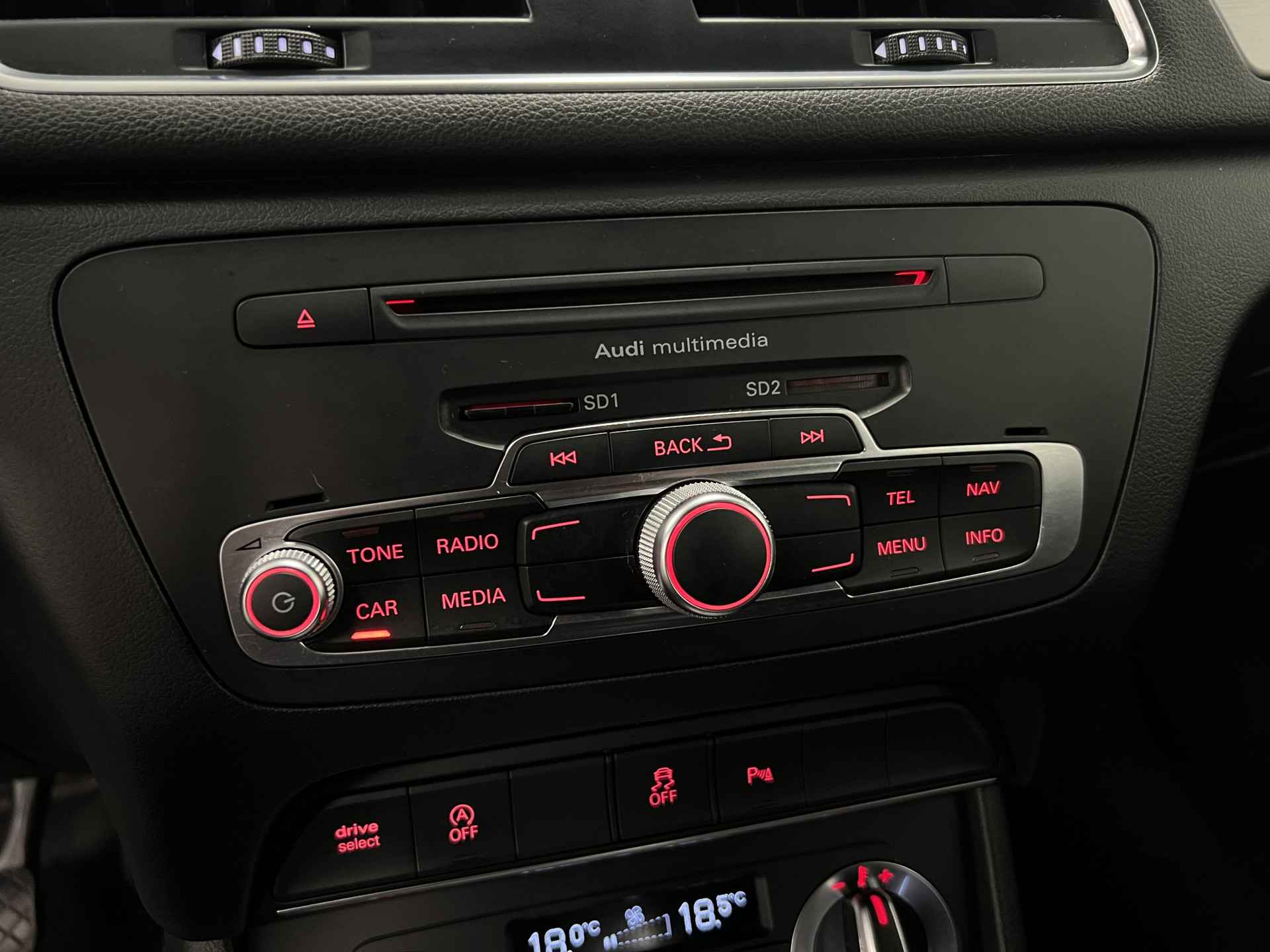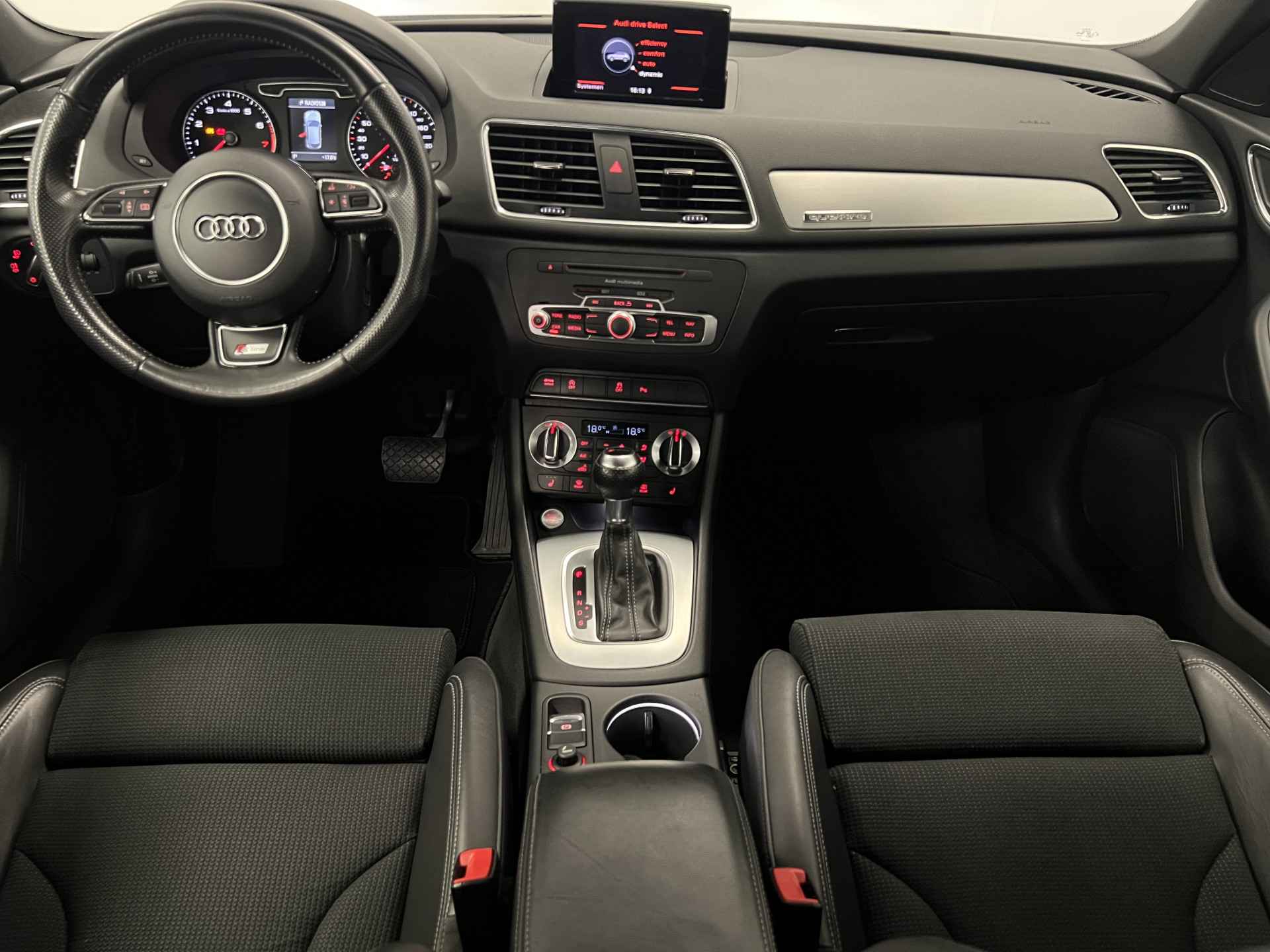 Ook de akoestiek in de auto wordt optimaal benut door het high performance audiosysteem. Of het buiten nu warm is of koud, dankzij electronic climate control is het binnen altijd behaaglijk. U kunt bij het inparkeren natuurlijk niet aan alle kanten ogen hebben. Daarom is deze Audi Q3 voorzien van parkeersensoren! Een constante snelheid is goed voor de ontspanning onderweg, en de cruise control zorgt ervoor. Ook navigatiesysteem, sportstuurwiel, centrale deurvergrendeling met afstandsbediening en boordcomputer horen tot de voorzieningen op deze auto.