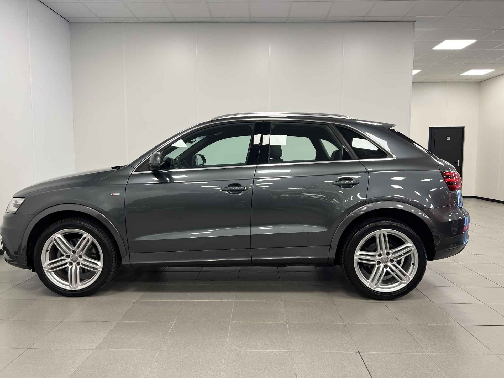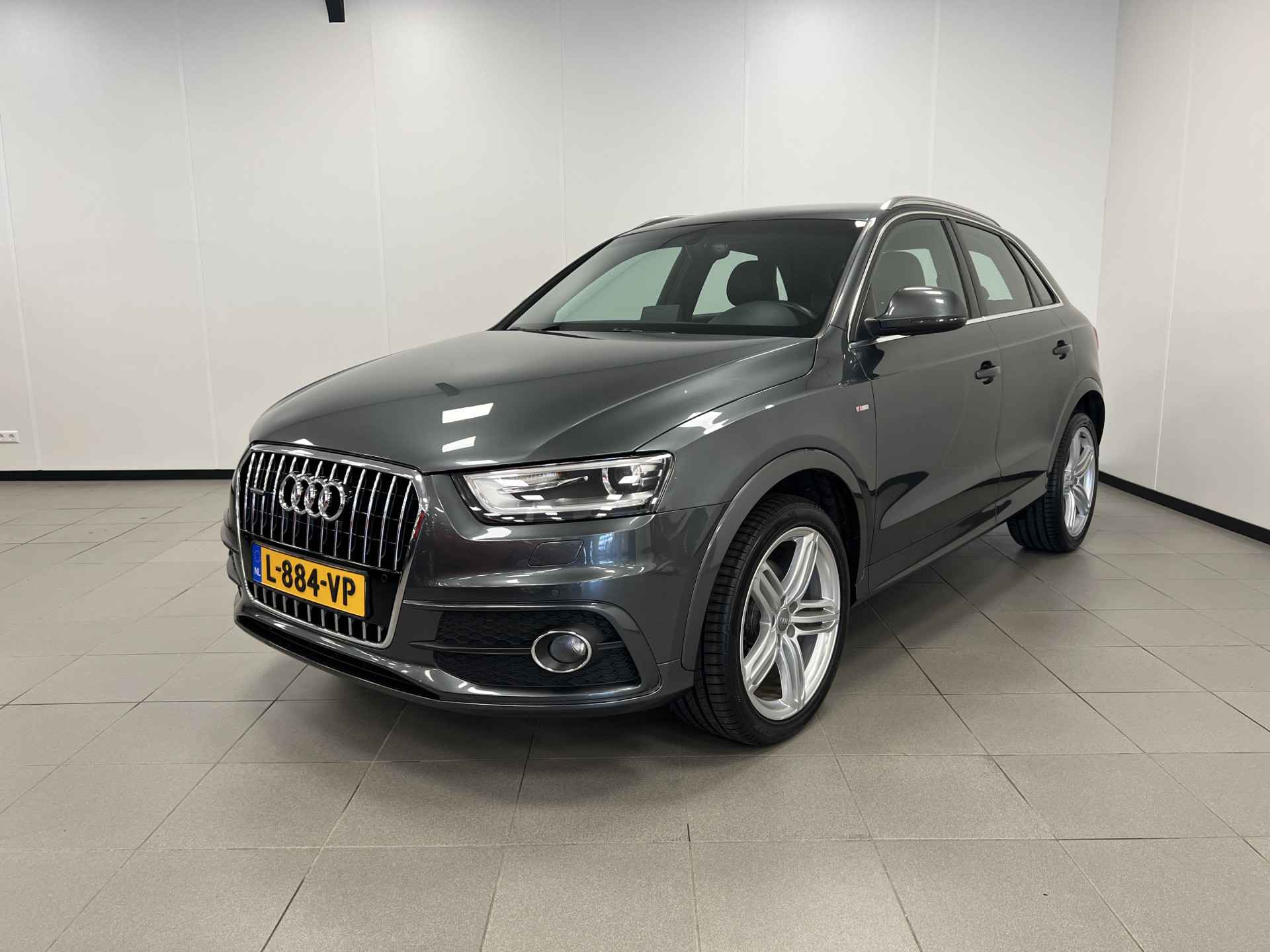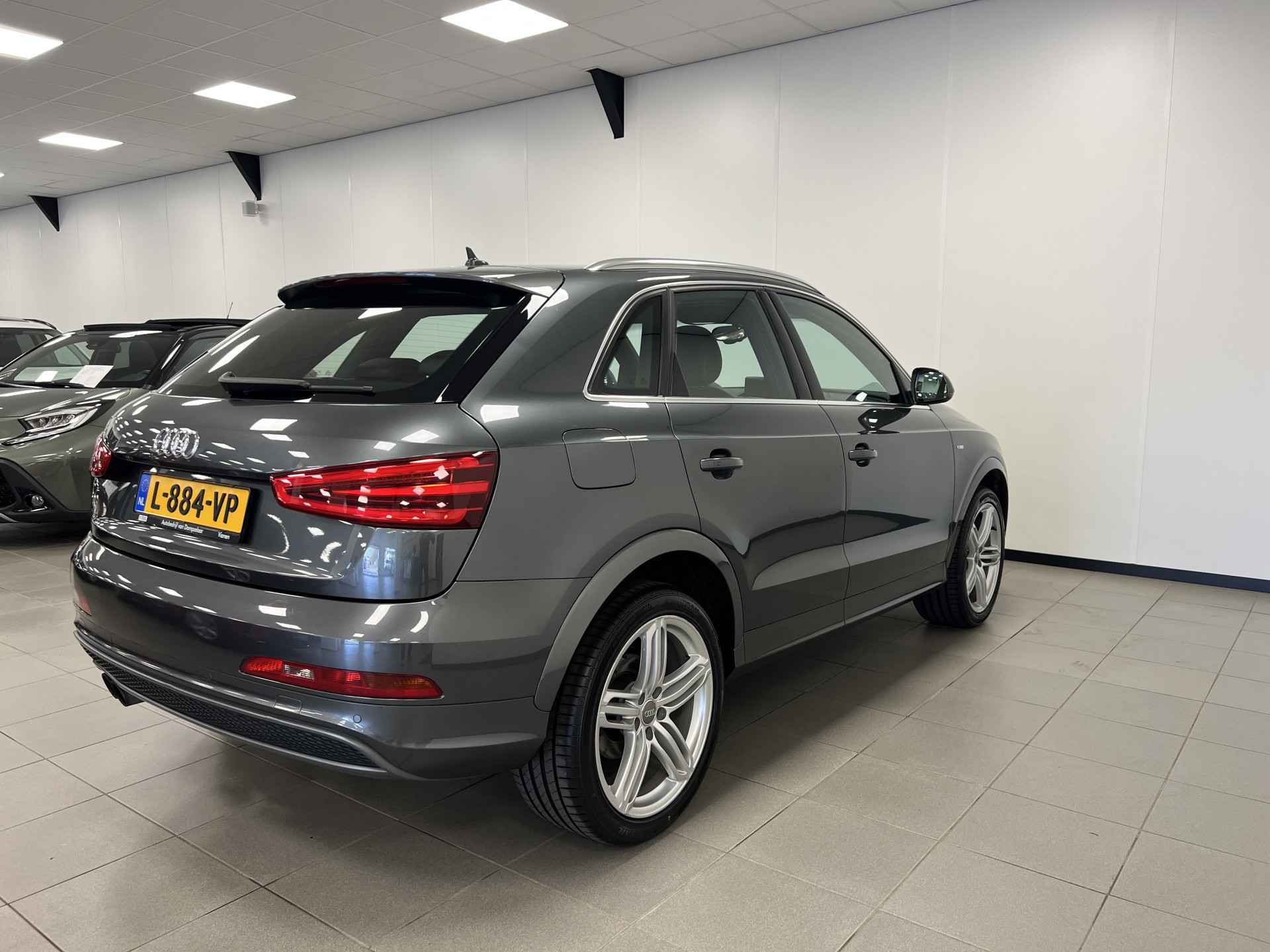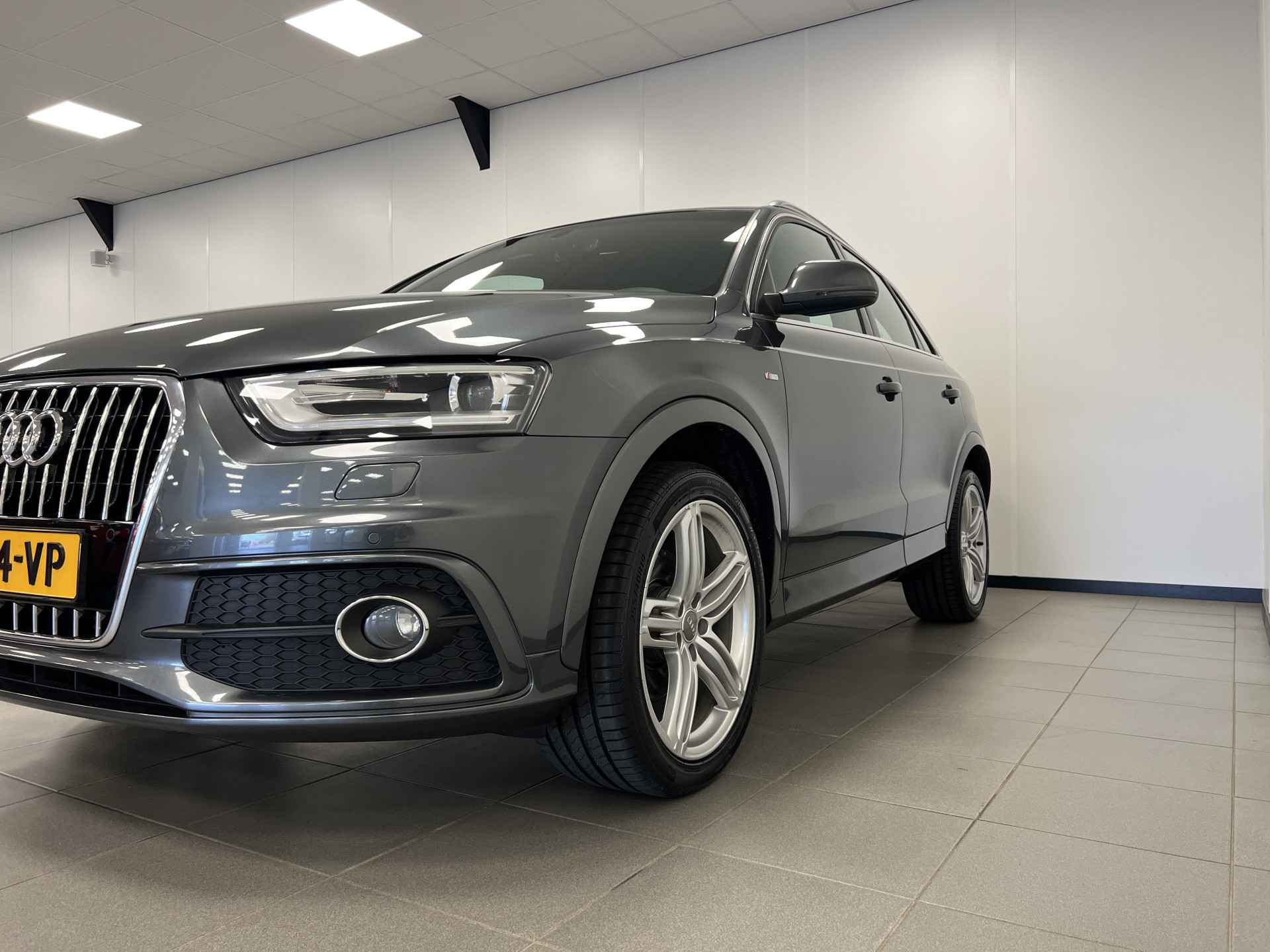 Deze Audi Q3 bewijst haar klasse met een elegant uiterlijk en een comfortabele binnenruimte, onmiskenbaar een kwaliteitsauto uit Duitsland. Een aantrekkelijke en fraaie optie is de expressieve S-Line styling. In deze auto vindt u een benzinemotor en een automatische transmissie. 's Winters komen de verwarmbare voorstoelen heerlijk van pas. In het interieur domineren de sportstoelen, die er niet alleen stijlvol uitzien, maar die u ook optimaal ondersteunen tijdens de rit. Met de krachtige xenonverlichting rijdt u ontspannen in het donker. Tot de voorzieningen van deze auto behoren 18 inch lichtmetalen velgen, sportonderstel en halflederen bekleding.