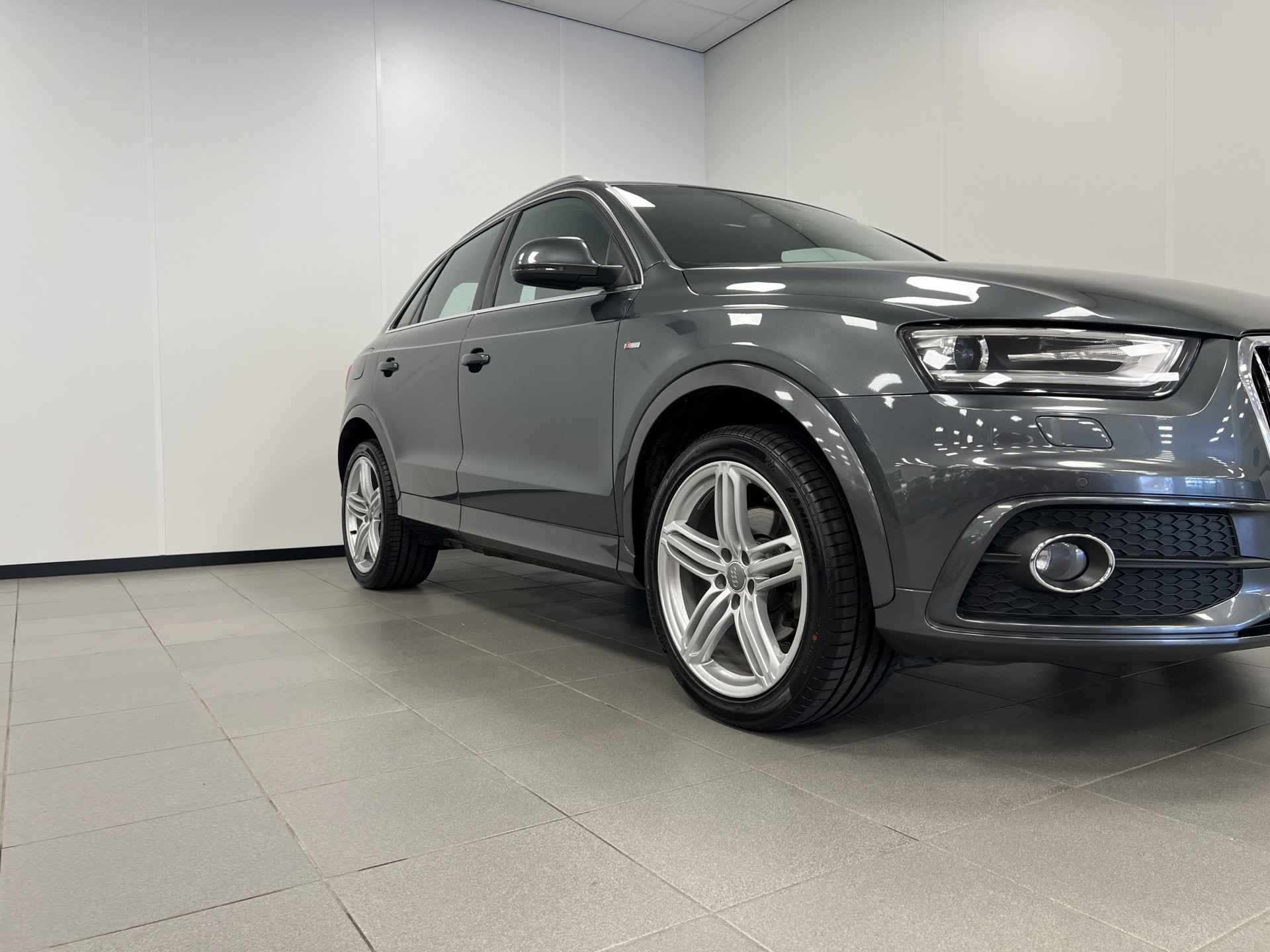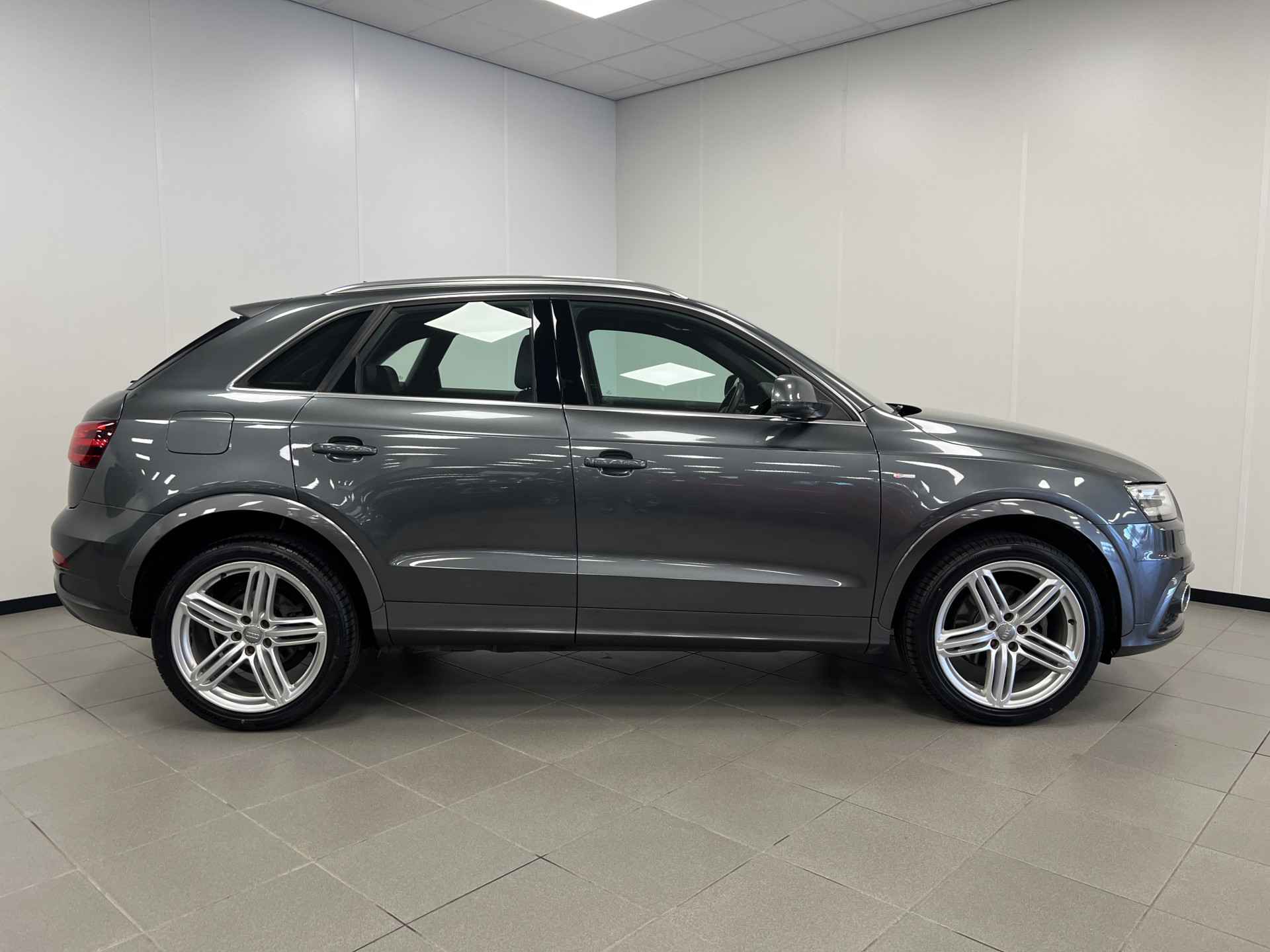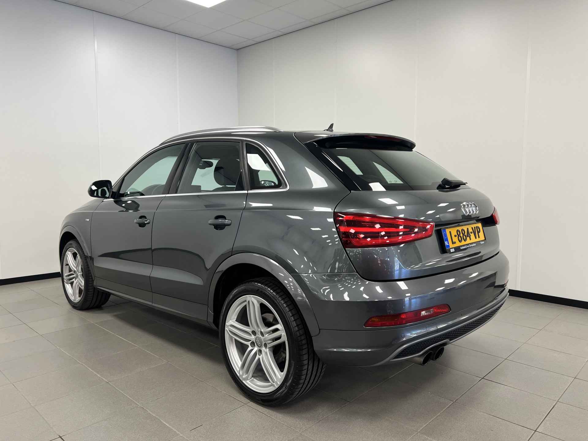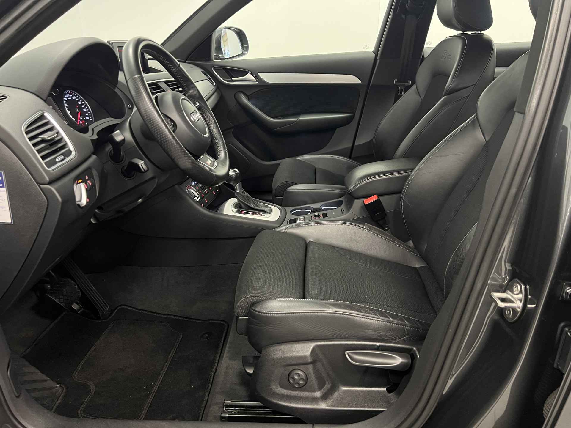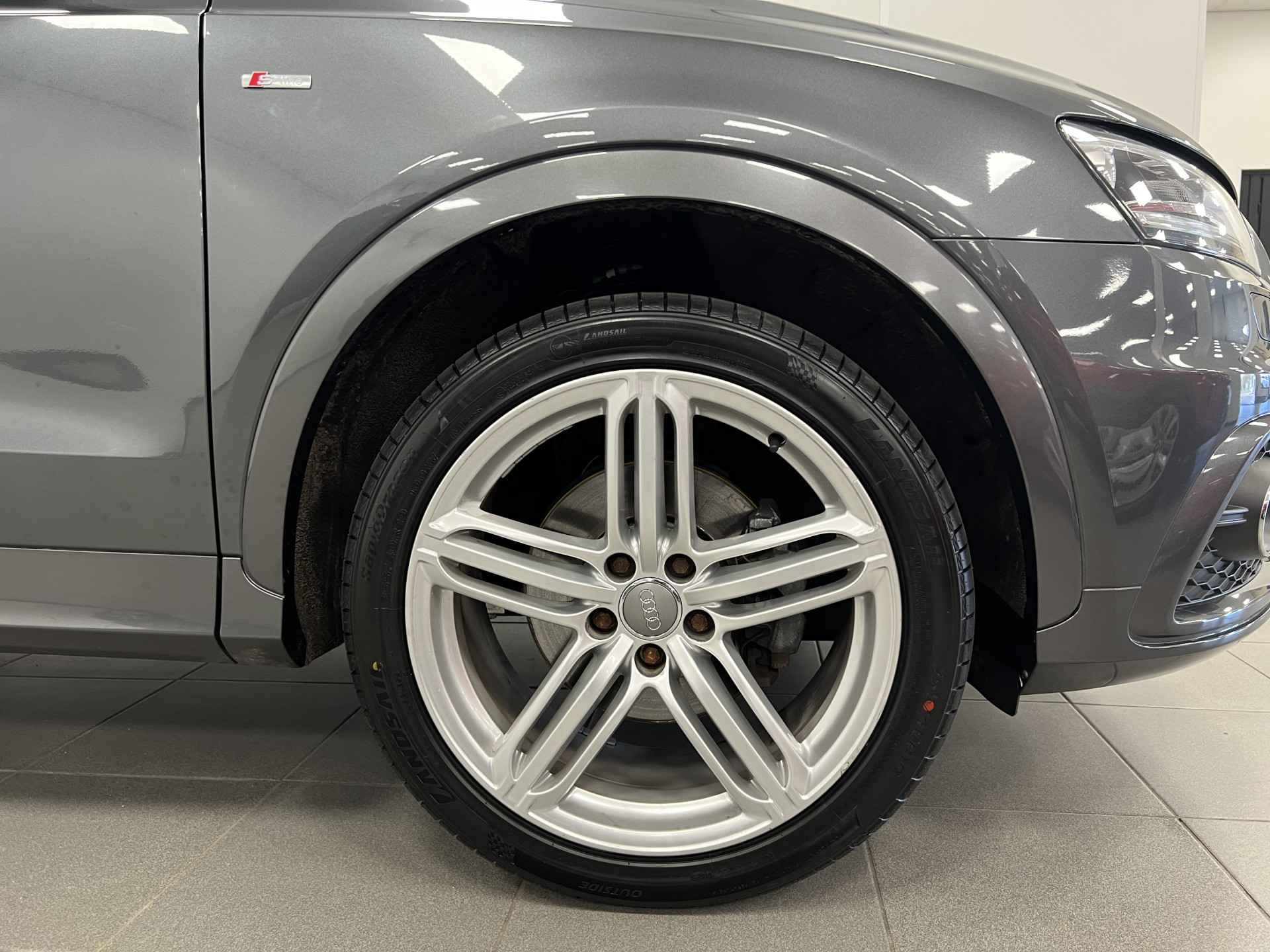 Deze Audi Q3 bewijst haar klasse met een elegant uiterlijk en een comfortabele binnenruimte, onmiskenbaar een kwaliteitsauto uit Duitsland. Een aantrekkelijke en fraaie optie is de expressieve S-Line styling. In deze auto vindt u een benzinemotor en een automatische transmissie. 's Winters komen de verwarmbare voorstoelen heerlijk van pas. In het interieur domineren de sportstoelen, die er niet alleen stijlvol uitzien, maar die u ook optimaal ondersteunen tijdens de rit. Met de krachtige xenonverlichting rijdt u ontspannen in het donker. Tot de voorzieningen van deze auto behoren 18 inch lichtmetalen velgen, sportonderstel en halflederen bekleding.