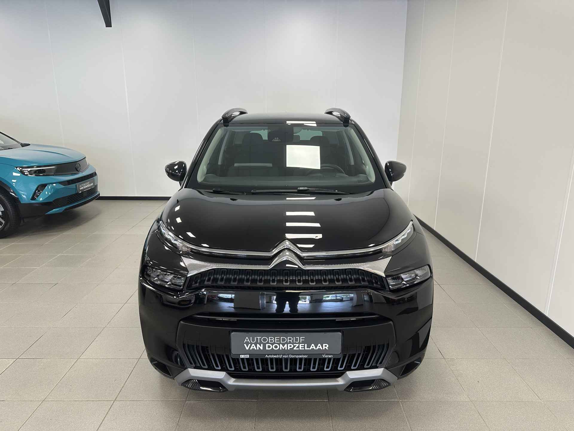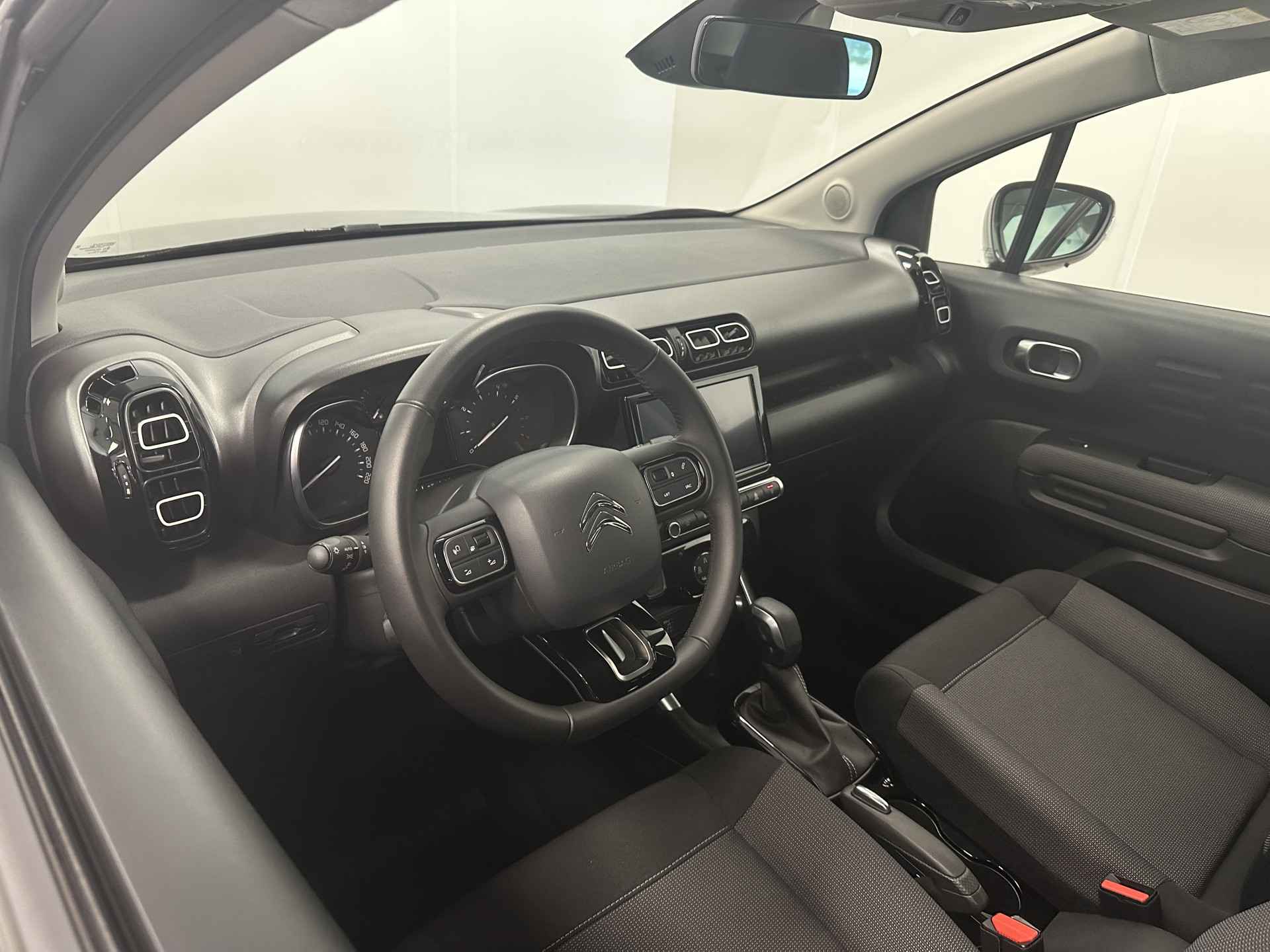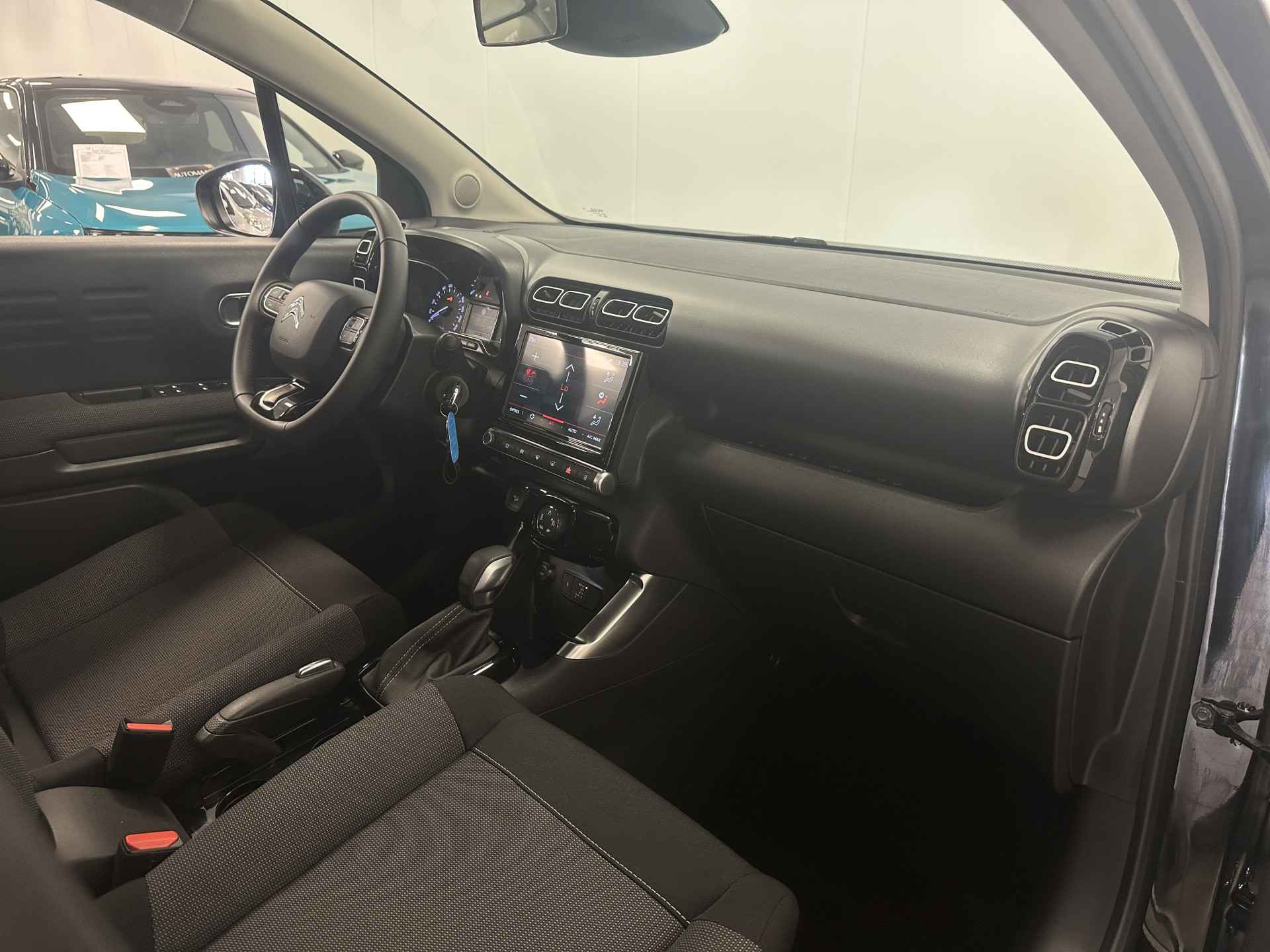 Alle technologie in de Citroën C3 Aircross is er op gericht om uw rit veilig en gemakkelijk te laten verlopen. Dit mooie exemplaar komt uit 2024. In deze SUV vindt u een driecilinder benzinemotor en een automatische transmissie. Ook 16 inch lichtmetalen velgen, LED koplampen, donker getint glas achter en in delen neerklapbare achterbank zijn aan boord.