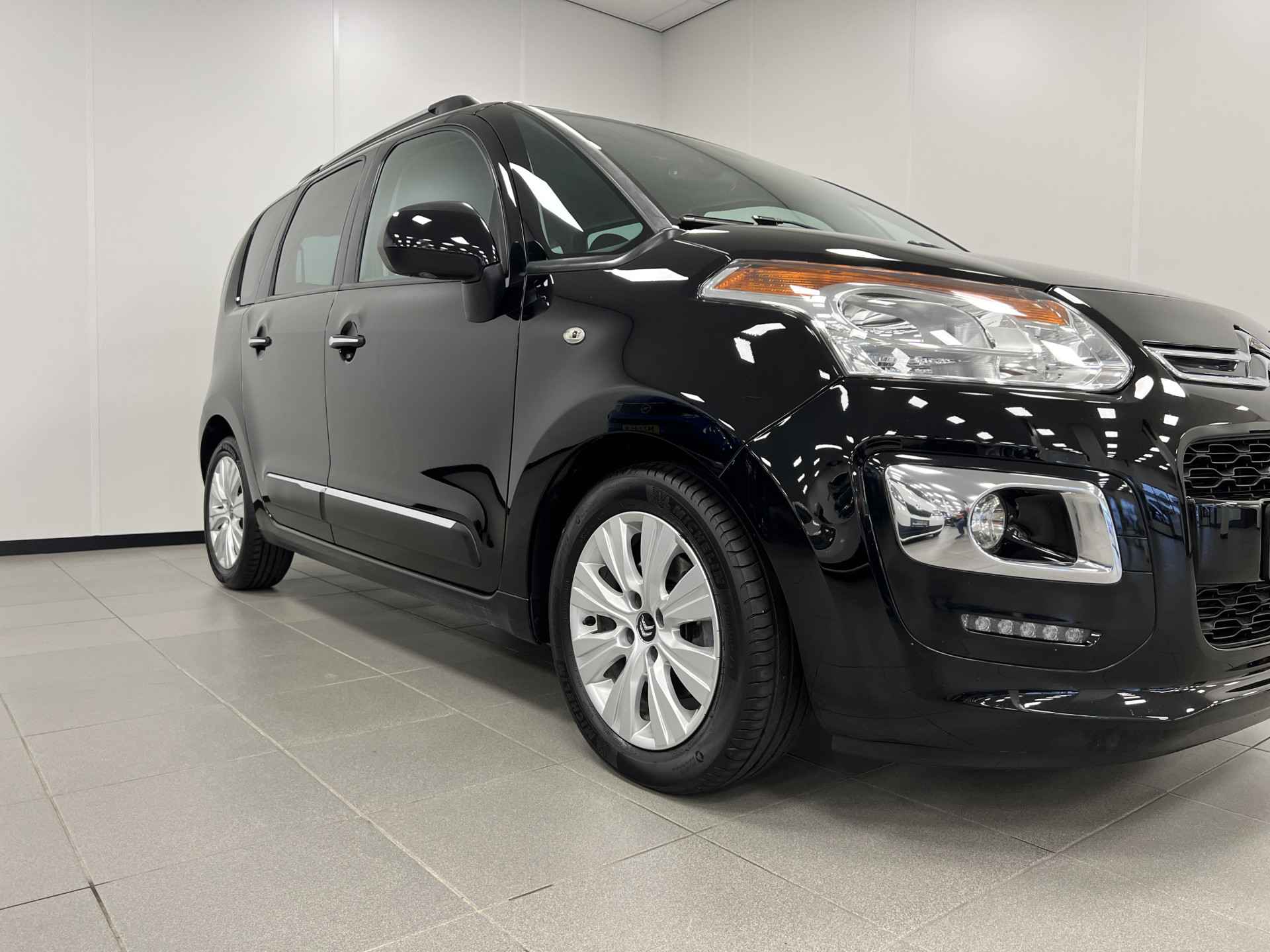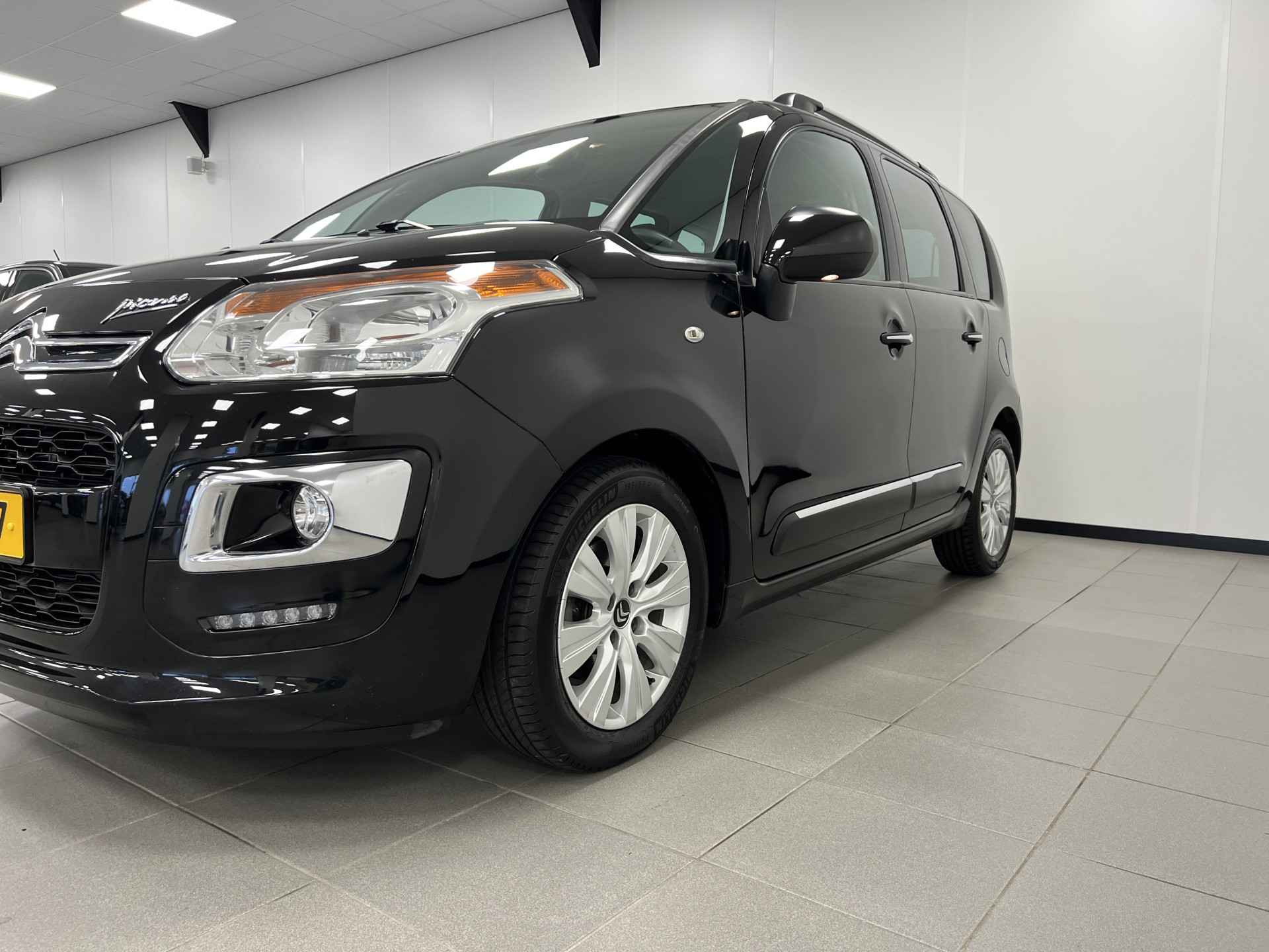 Het is een nette en comfortabele auto, deze Citroën C3 Picasso, hij heeft 84082 kilometer gelopen. De aandrijving komt voor rekening van een benzinemotor en een handgeschakelde vijfversnellingsbak. Bij de uitrusting van deze Citroën horen onder meer 16 inch lichtmetalen velgen, LED-dagrijverlichting, donker getint glas achter en in delen neerklapbare achterbank.